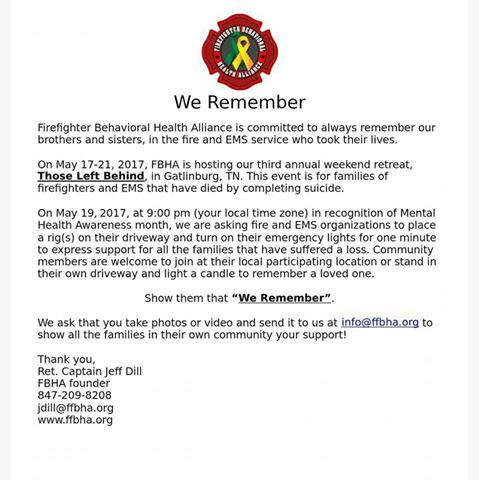 Rippey Fire Department will be participating in this event. Rippey Community, please feel free to come a little early to meet and chat with the available firefighters, light a candle with us or just stand in silence for the one minute in front of our station. The lighting of the truck lights and /or candles will take place Friday May 19th at 9pm on the dot. Thank you so much for your support.